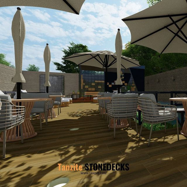 Odmień swoje przestrzenie zewnętrzne za pomocą Tanzite Stonedecks, wyjątkowej kolekcji na tarasy, tarasy, patio, dachy i doki. Nasze produkty zewnętrzne obejmują kamienne deski, kostkę brukową i płyty, które podkreślają trwałość kamienia. Wybierz kolekcję przeciwdeszczową, aby zapewnić płynne połączenie z otoczeniem, lub wybierz kolekcję wodoodporną, idealną na podwyższone tarasy na drugim piętrze. Dzięki szerokiej gamie kolorów nasze produkty oferują nieograniczone możliwości projektowania, dzięki czemu możesz stworzyć idealne miejsce do wypoczynku na świeżym powietrzu. Tanzite Stonedecks łączą trwałą trwałość z luksusową estetyką, dzięki czemu Twoja oaza na świeżym powietrzu przetrwa próbę czasu.
