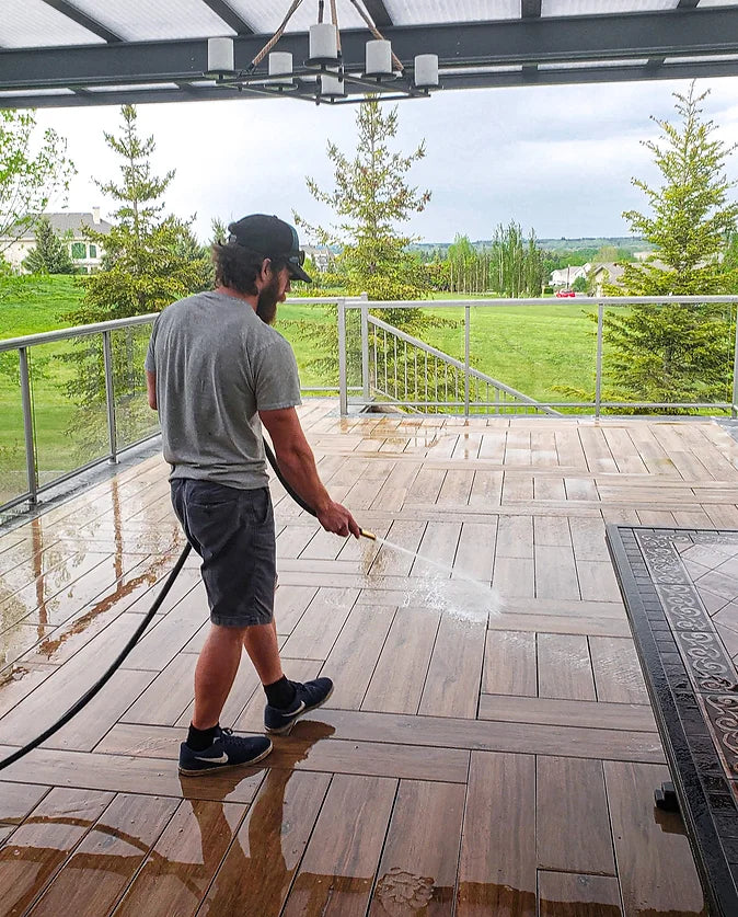 Uwaga: czyszczenie antypoślizgowych właściwości Tanzite STONEDECK może wymagać nieco więcej wysiłku. Jeśli podczas czyszczenia tarasu wystąpią jakiekolwiek problemy, prześlij nam informacje i zdjęcie na adres warranty@tanzite.com, a udzielimy Ci konkretnej porady.