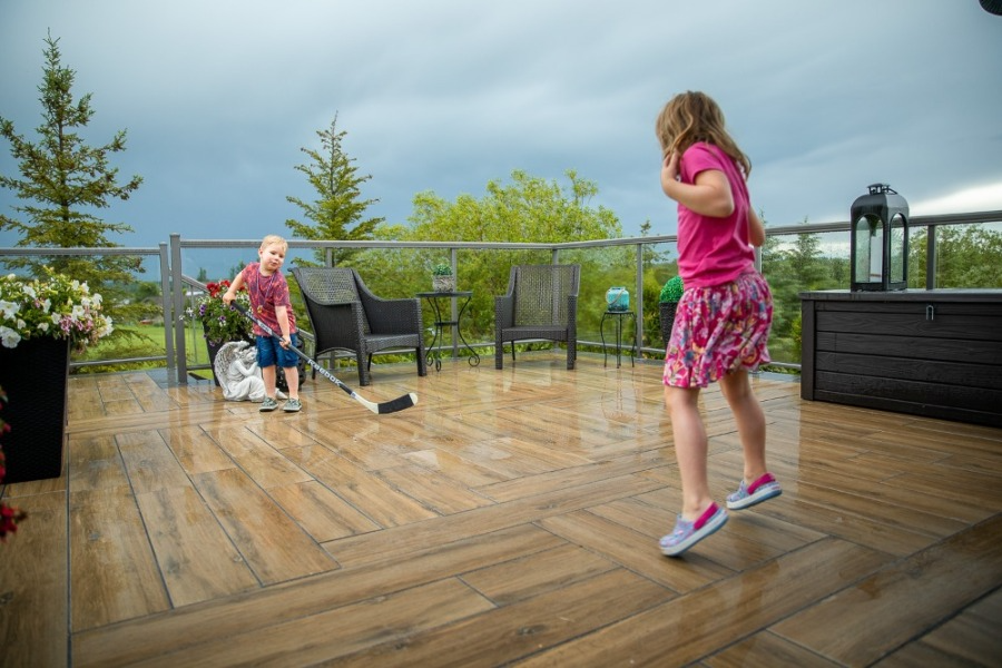 Wodoodporny taras, który pokrywa każdą typową istniejącą lub nową konstrukcję drewnianą! Można go również zamontować na betonie lub bezpośrednio na podłożu.